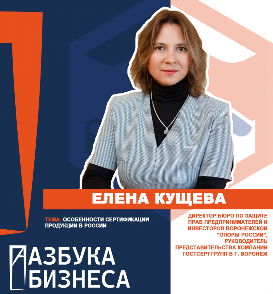 Кущева Елена - директор Бюро по защите прав предпринимателей и инвесторов Воронежской "ОПОРЫ РОССИИ", руководитель представительства компании ГОСТСЕРТГРУПП в г. Воронеж