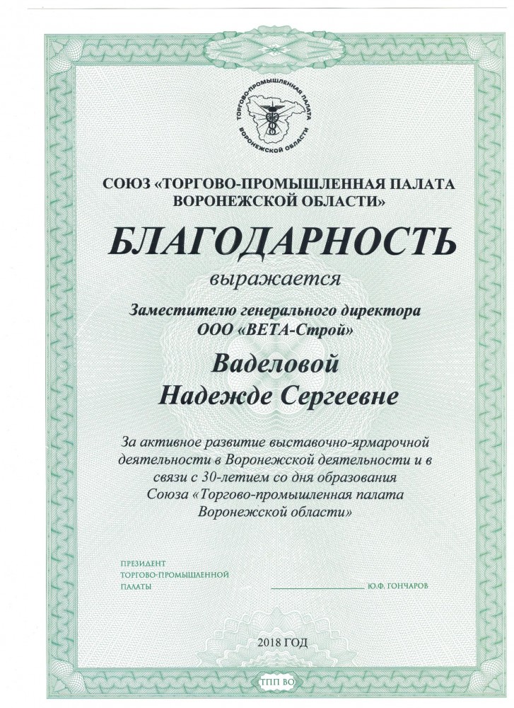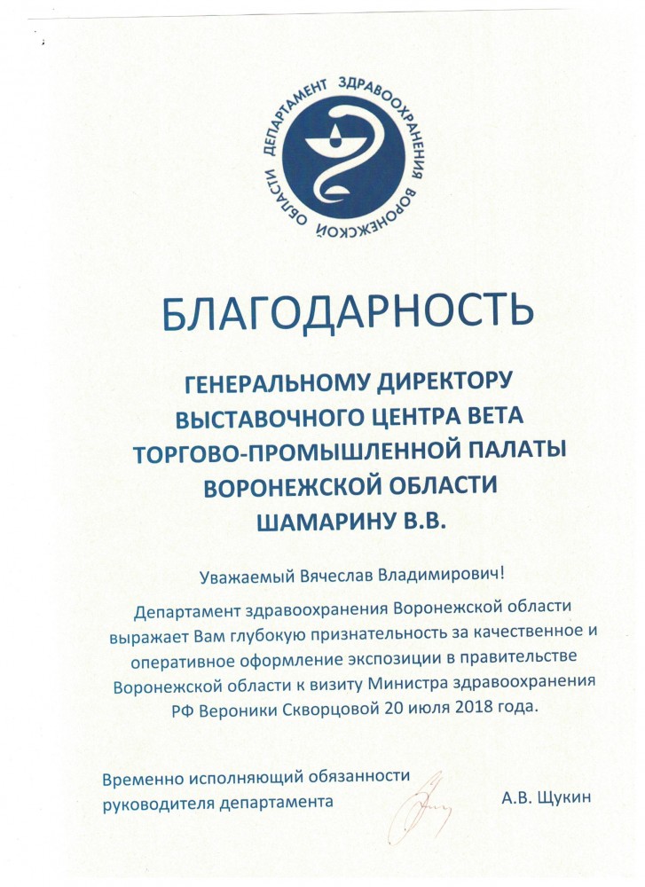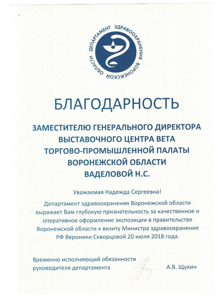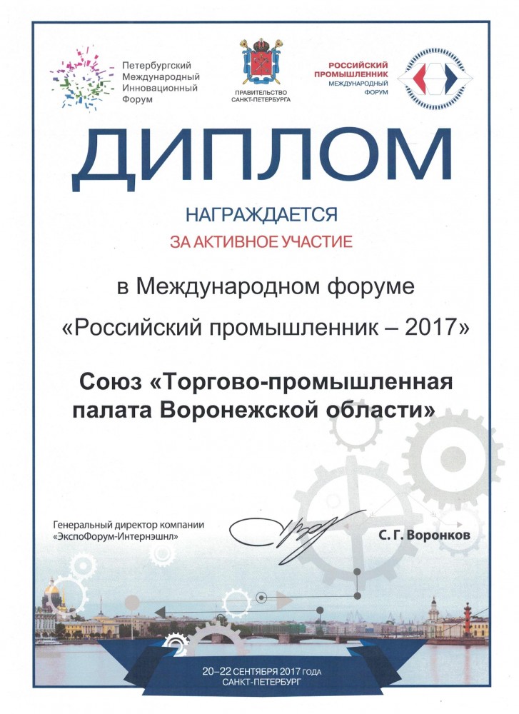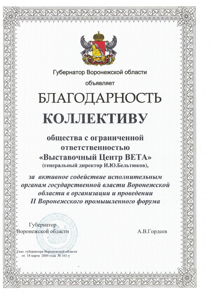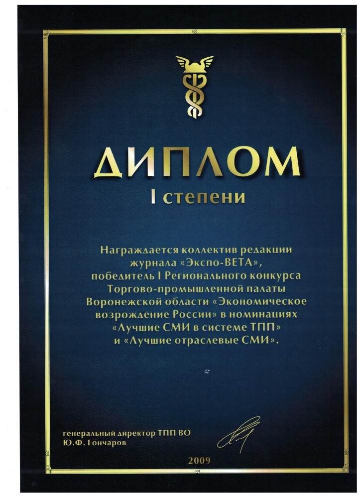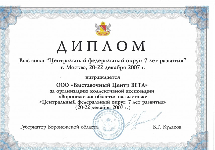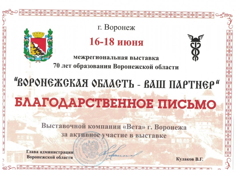 Более 30 лет проведения региональных, национальных и международных специализированных выставок, конгрессов, семинаров. Эффективное участие коллективных экспозиций предприятий Воронежской области на крупных федеральных и зарубежных выставках.