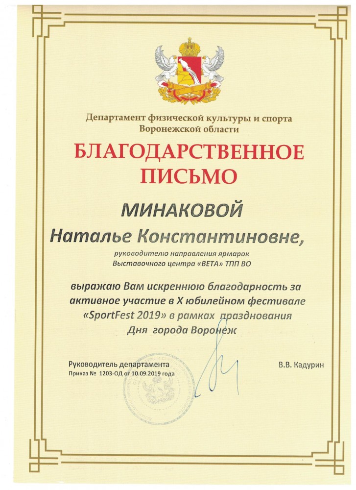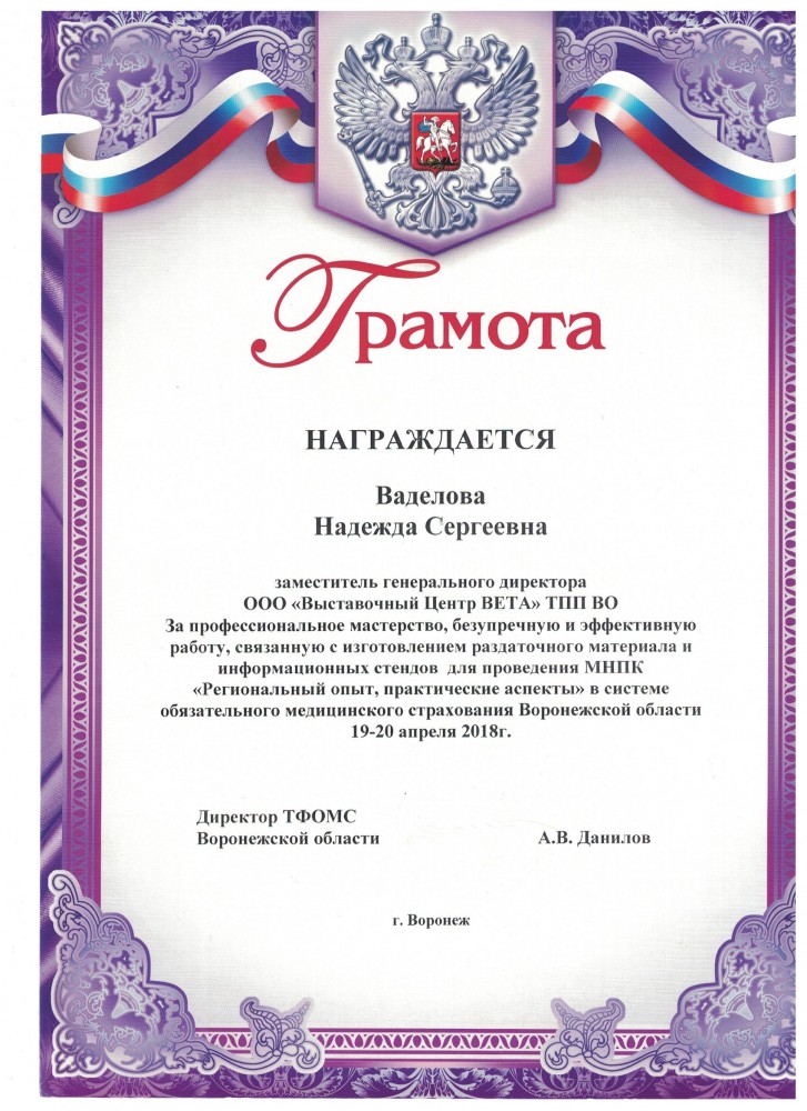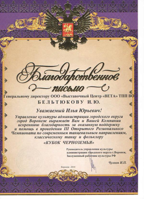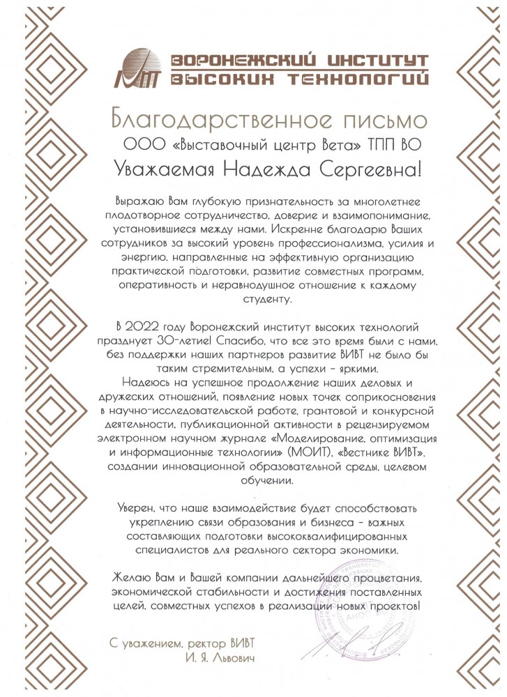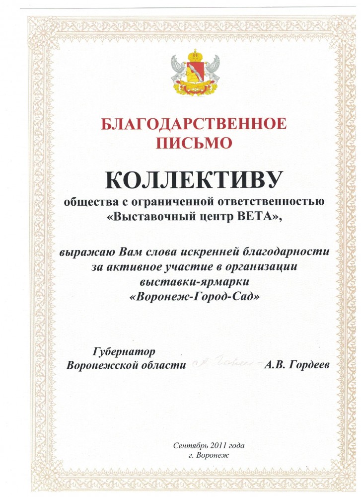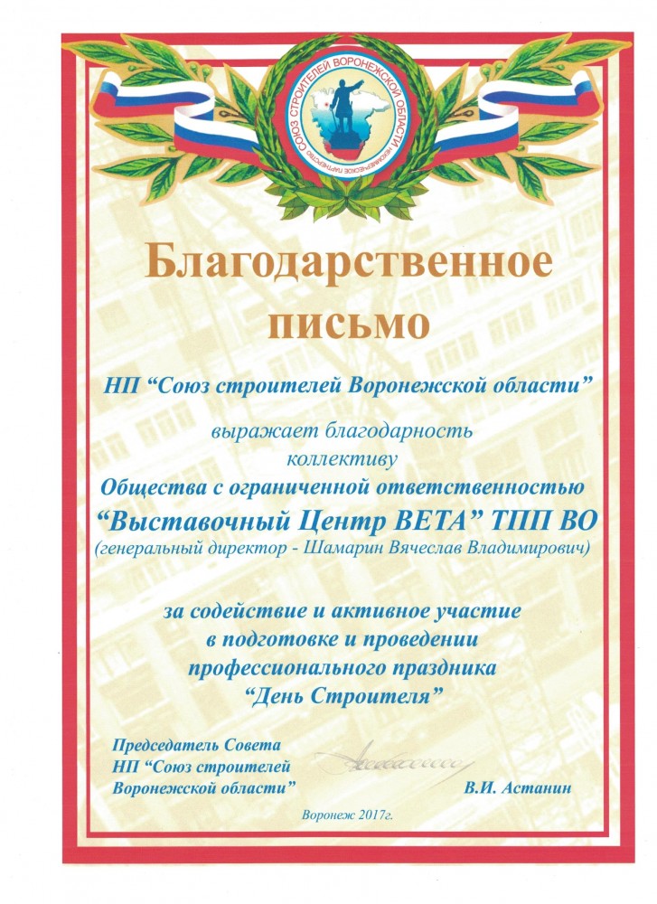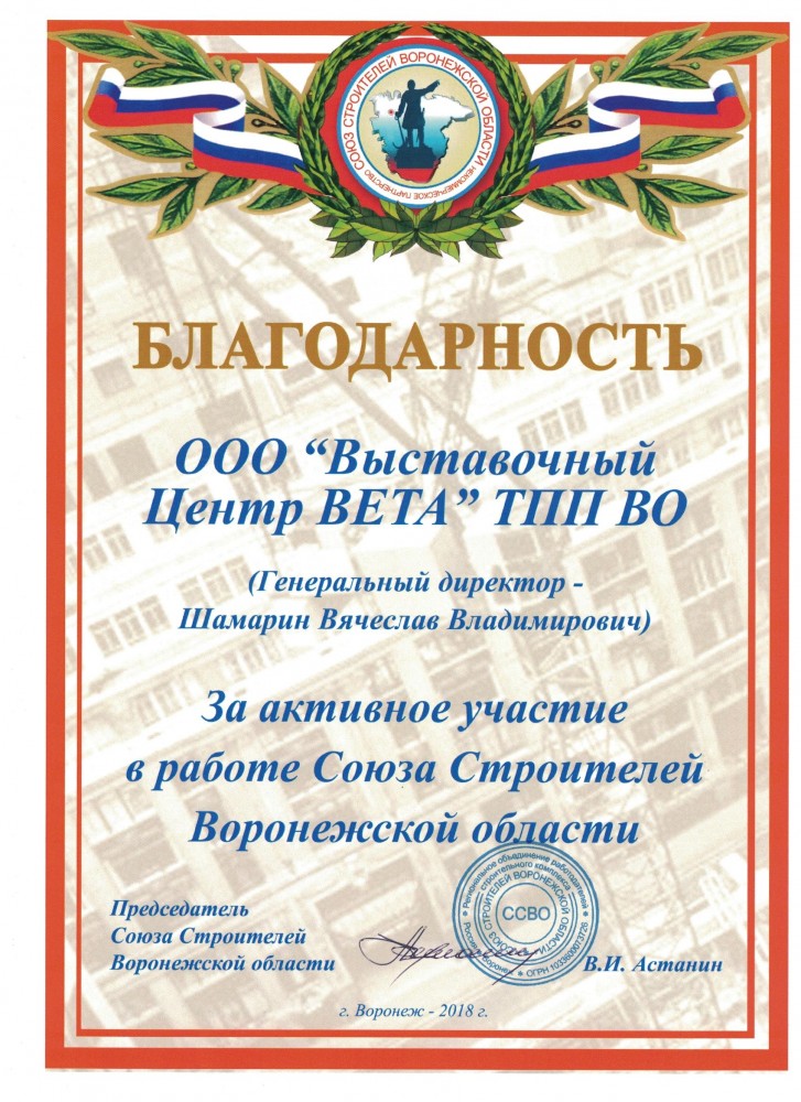 Более 30 лет проведения региональных, национальных и международных специализированных выставок, конгрессов, семинаров. Эффективное участие коллективных экспозиций предприятий Воронежской области на крупных федеральных и зарубежных выставках.