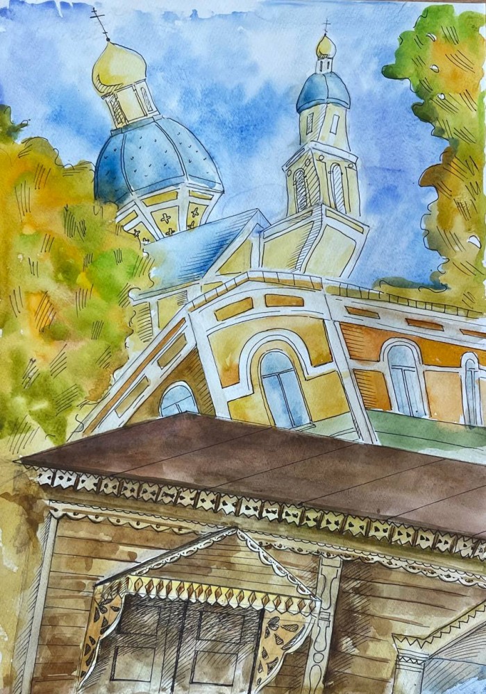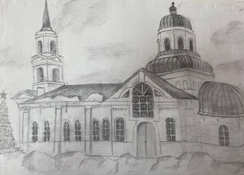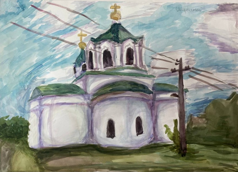 15. "Архитектурная точность" - Сингурова Евгения, с работой "Церковь Николая Чудотворца"