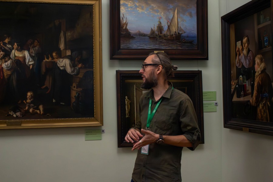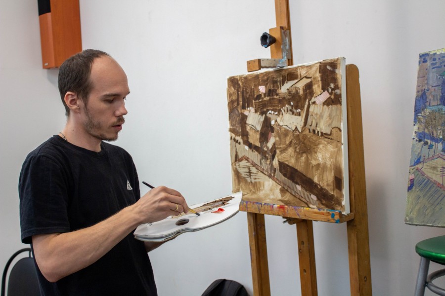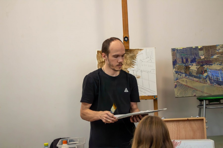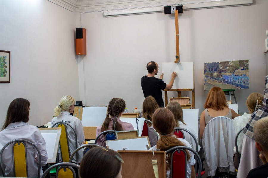 После познавательной экскурсии, гостей пригласили на мастер-класс, который провел Кострюков Евгений Александрович, член Союза художников России, декан живописного факультета ФБОУ ВО «Воронежский государственный институт искусств».