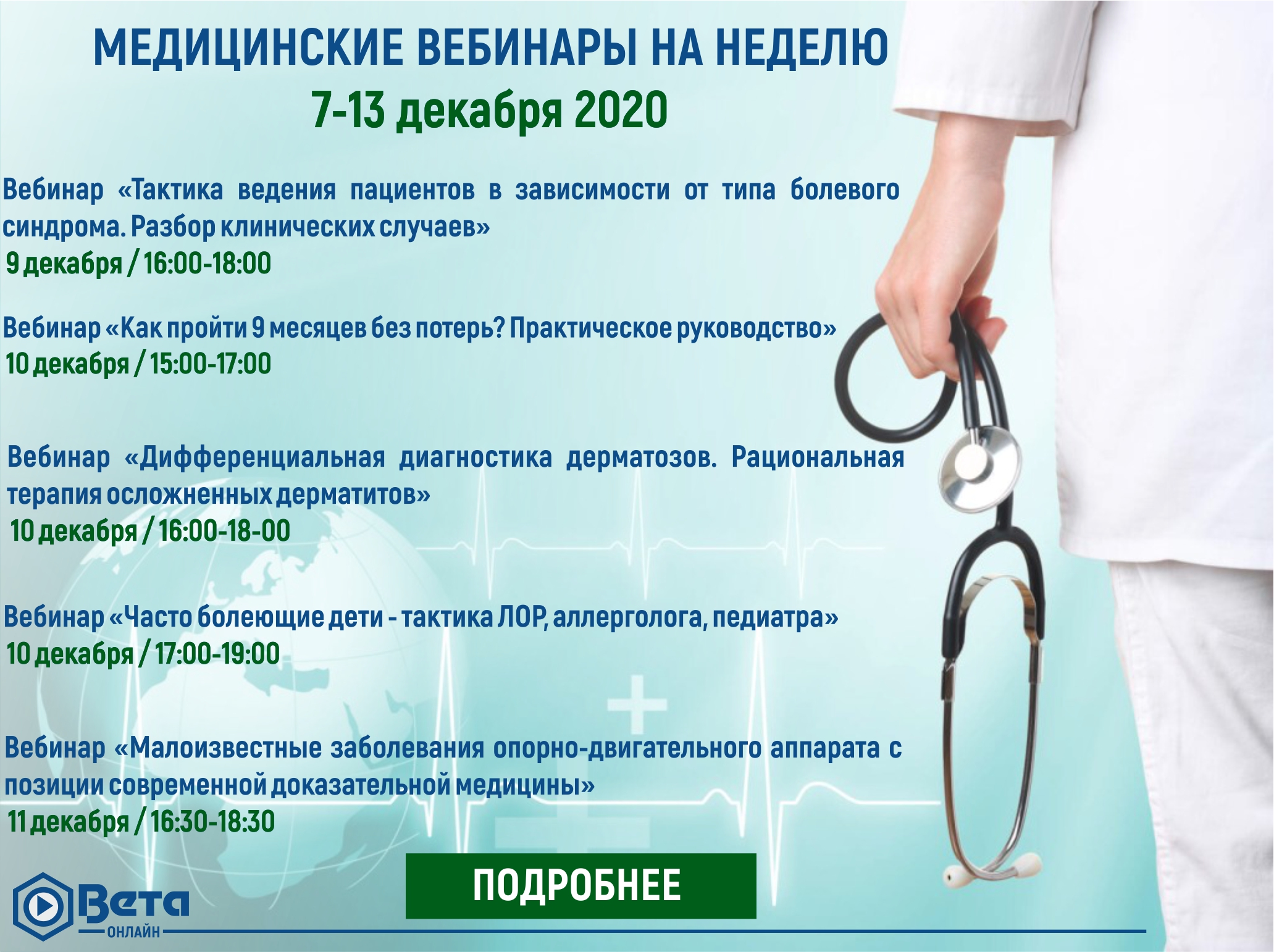 Медицинские вебинары на предстоящую неделю (7-13 декабря 2020)
