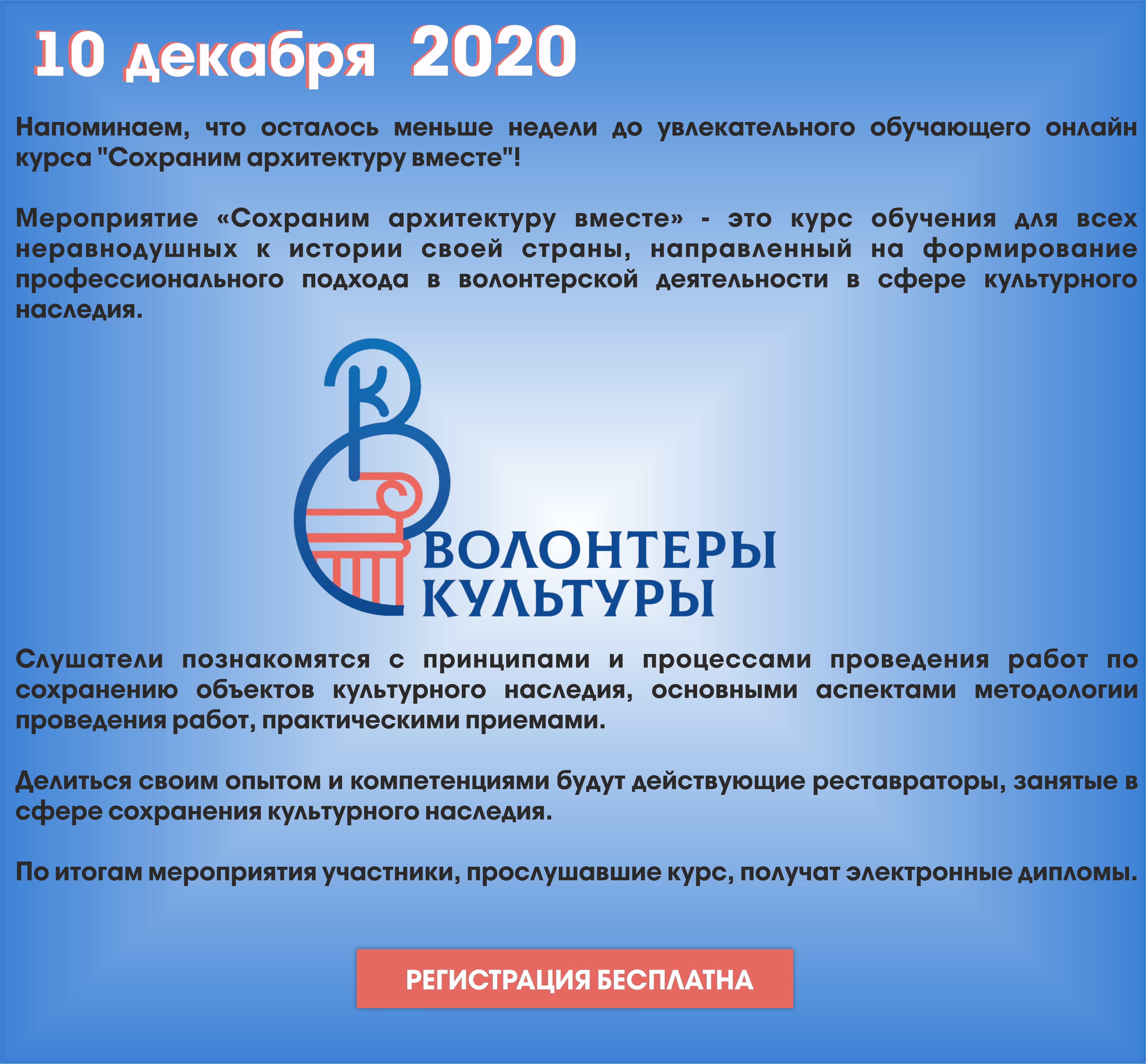МЕНЬШЕ НЕДЕЛИ ДО ОБУЧАЮЩЕГО КУРСА "СОХРАНИМ АРХИТЕКТУРУ ВМЕСТЕ"