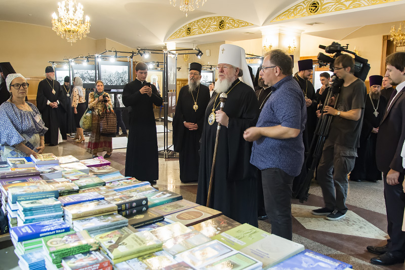 Затем Глава Воронежской митрополии в сопровождении Архипастырей и духовенства спустился в цокольный этаж кафедрального собора и ознакомился с православными изданиями, предложенными на Митрофановской книжной выставке-ярмарке.