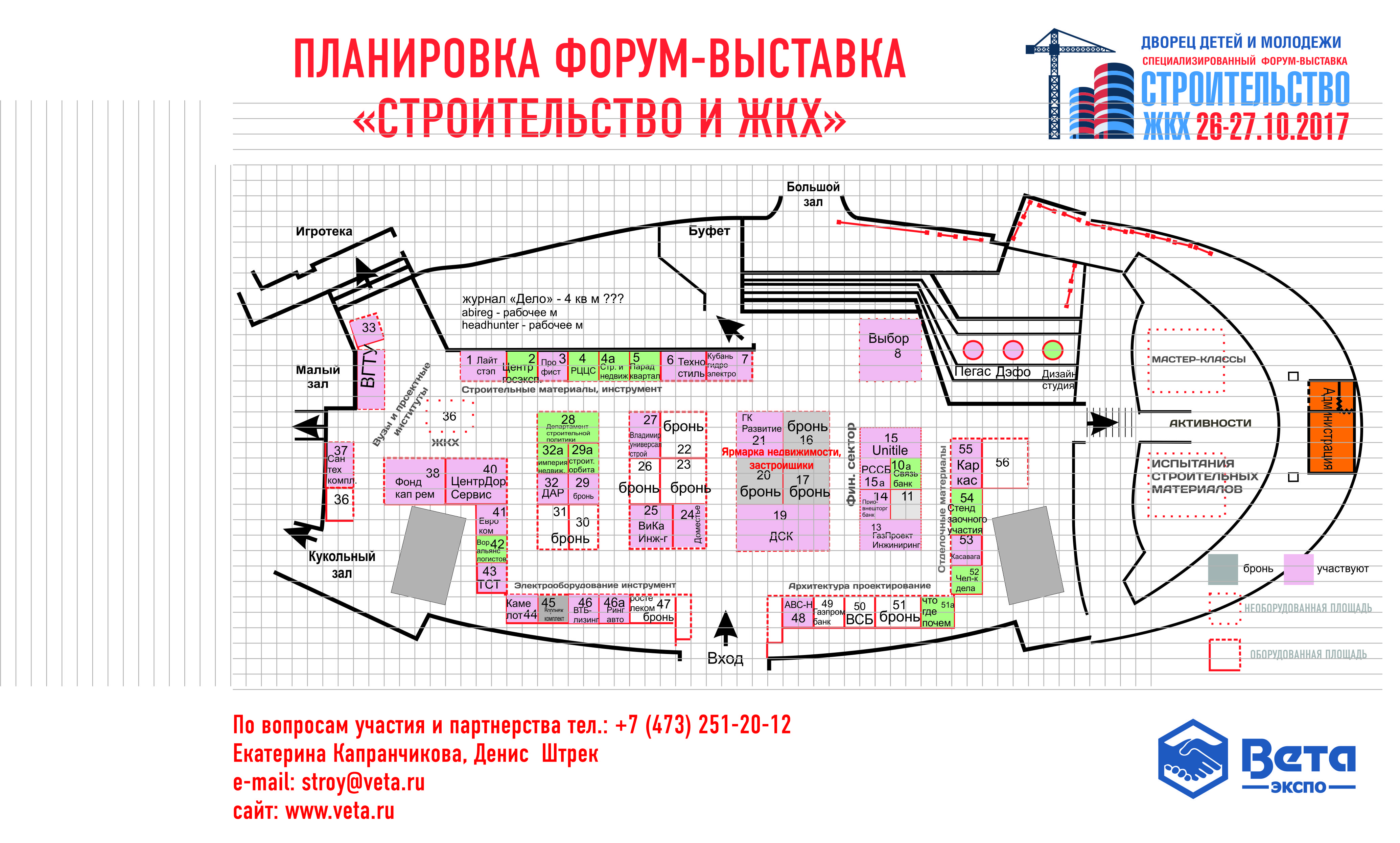 По вопросам участия и посещения: (473) 2-512-012, e-mail: stroy.veta@mail.ru. Оперативная информация на сайте www.veta.ru.